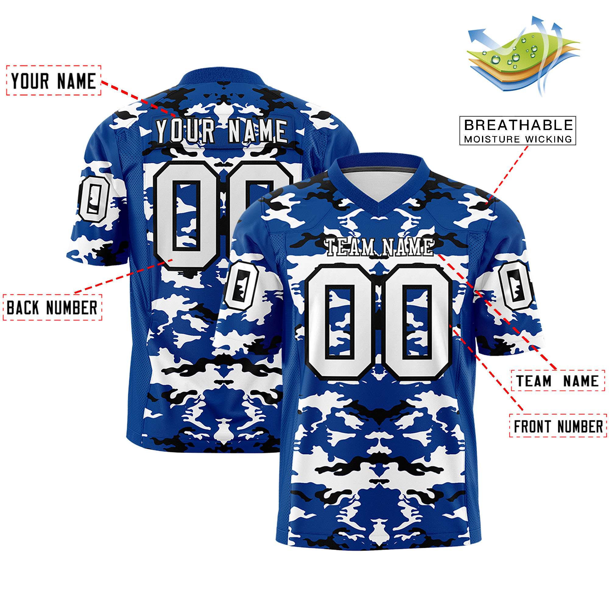 Custom Royal White-Black Personalized Camo Authentic Football Jersey