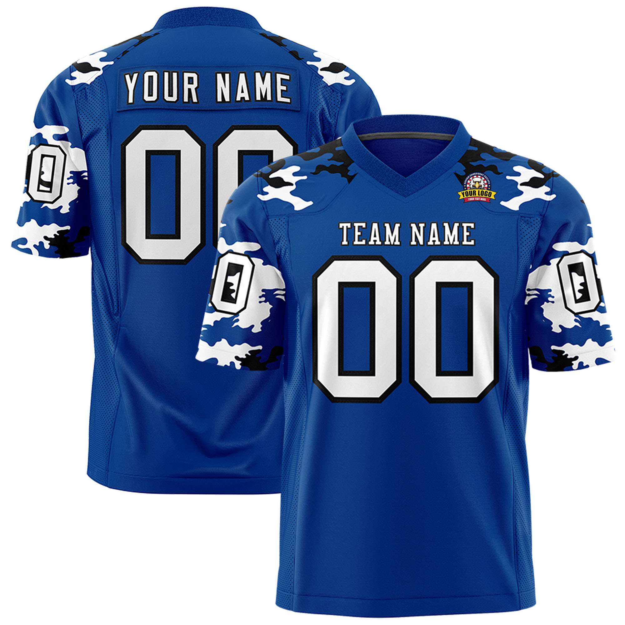 Custom Royal White-Black Personalized Camo Authentic Football Jersey