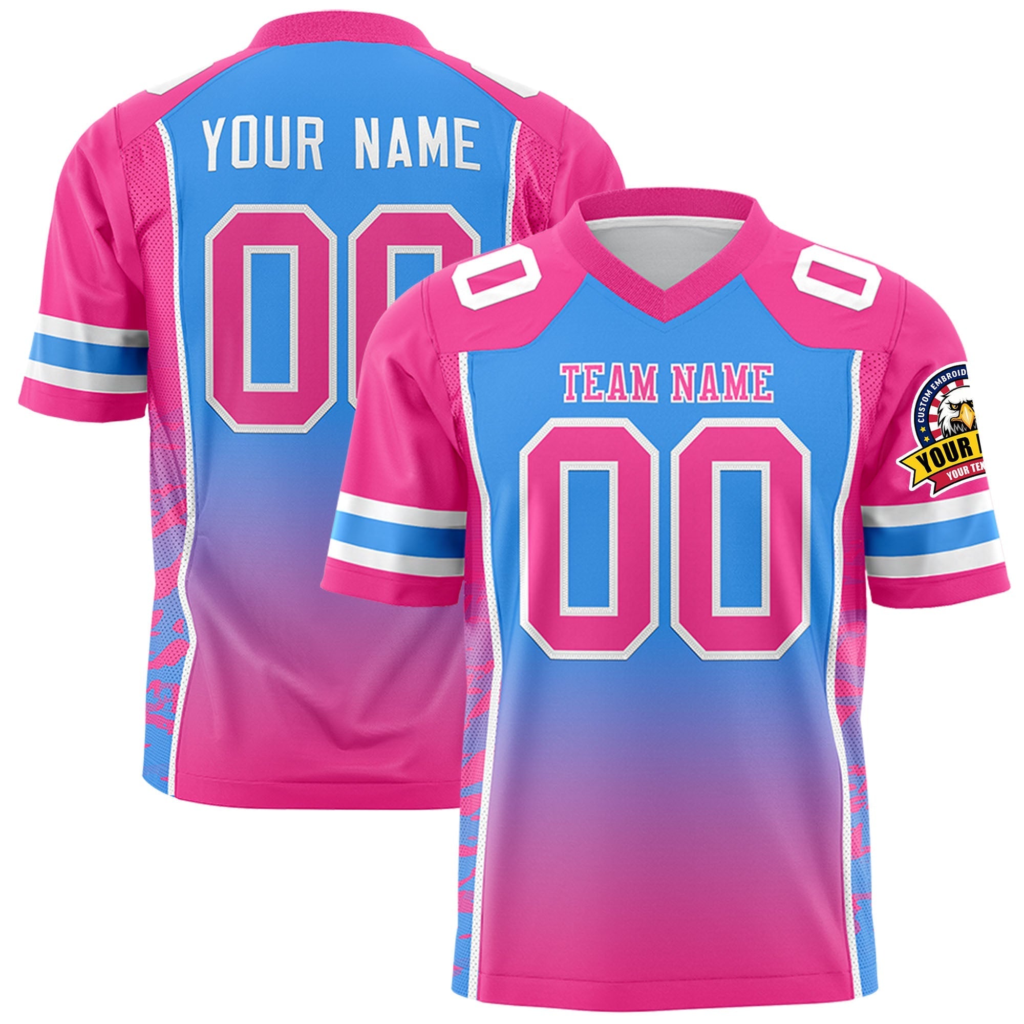 Custom Powder Blue Pink Gradient Personalized Side Pattern Authentic Football Jersey