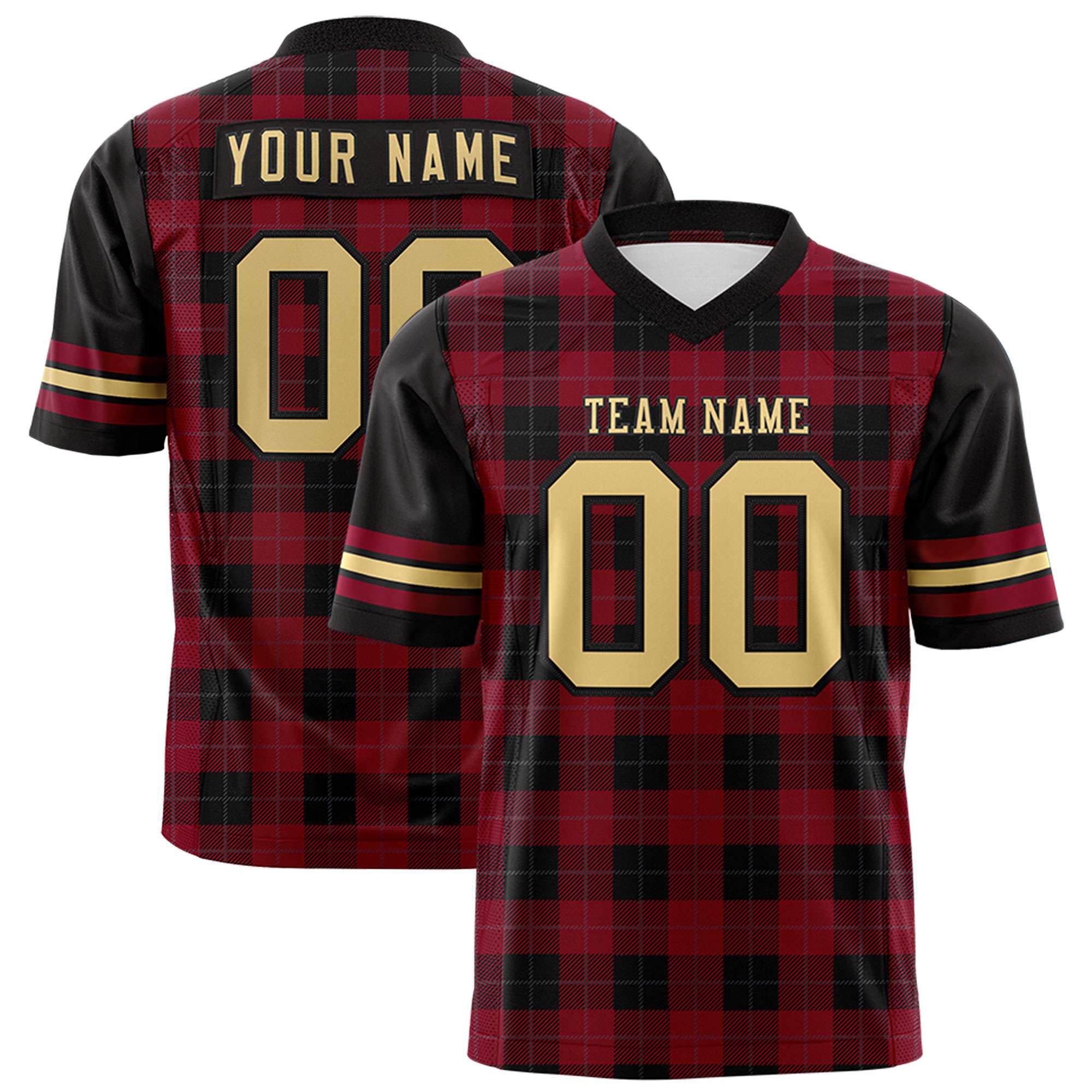 Custom Red Black Personalized Plaid Pattern Design Authentic Football Jersey
