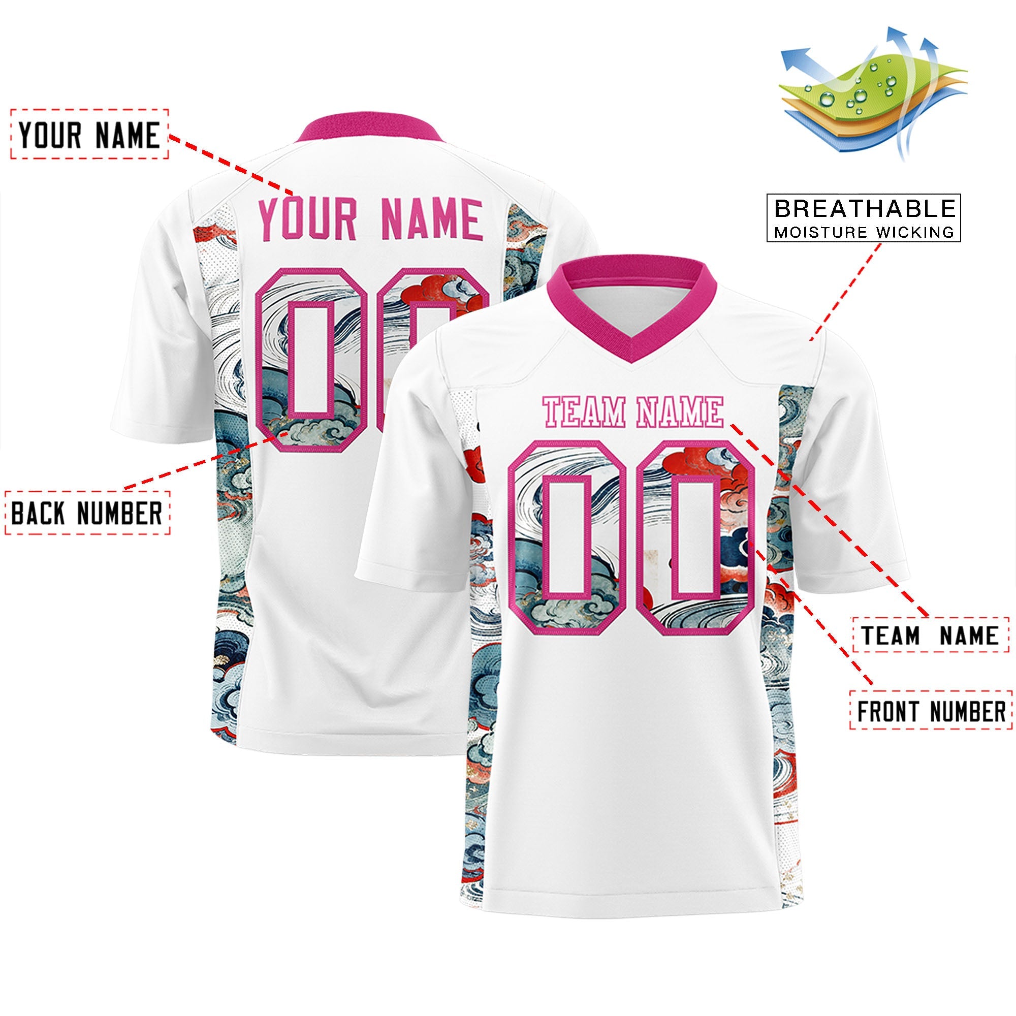 Custom White Rose Red Ukiyo-e Auspicious Clouds Graffiti Pattern Football Jersey