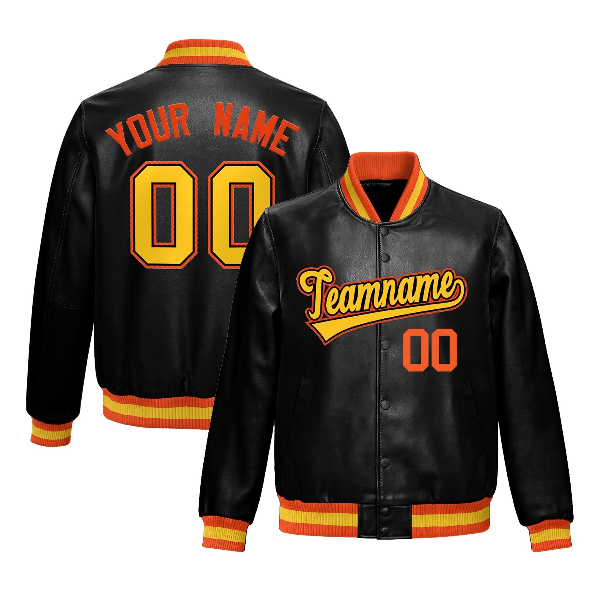 Premium faux leather varsity jacket with an athletic cut and exquisite stitching. Wrinkle-resistant, durable, and featuring a classic front pocket for a sharp, lasting look.