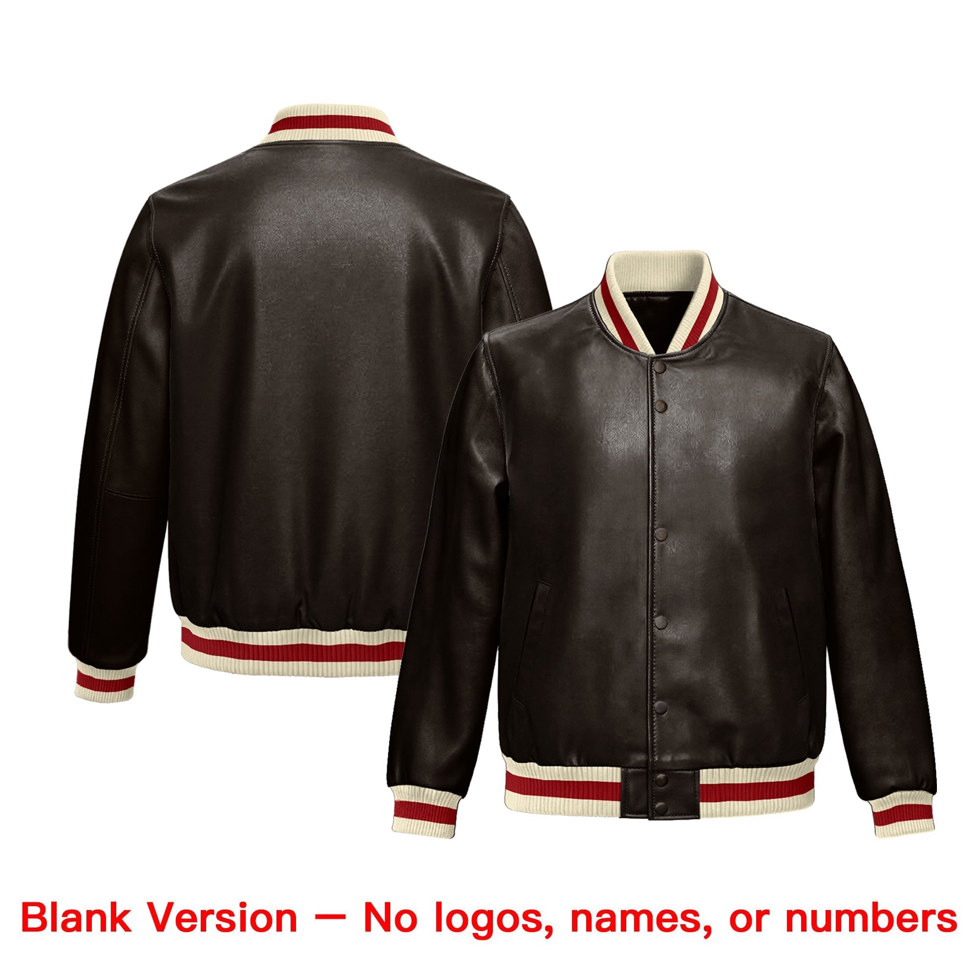 Premium faux leather varsity jacket with an athletic cut and exquisite stitching. Wrinkle-resistant, durable, and featuring a classic front pocket for a sharp, lasting look.