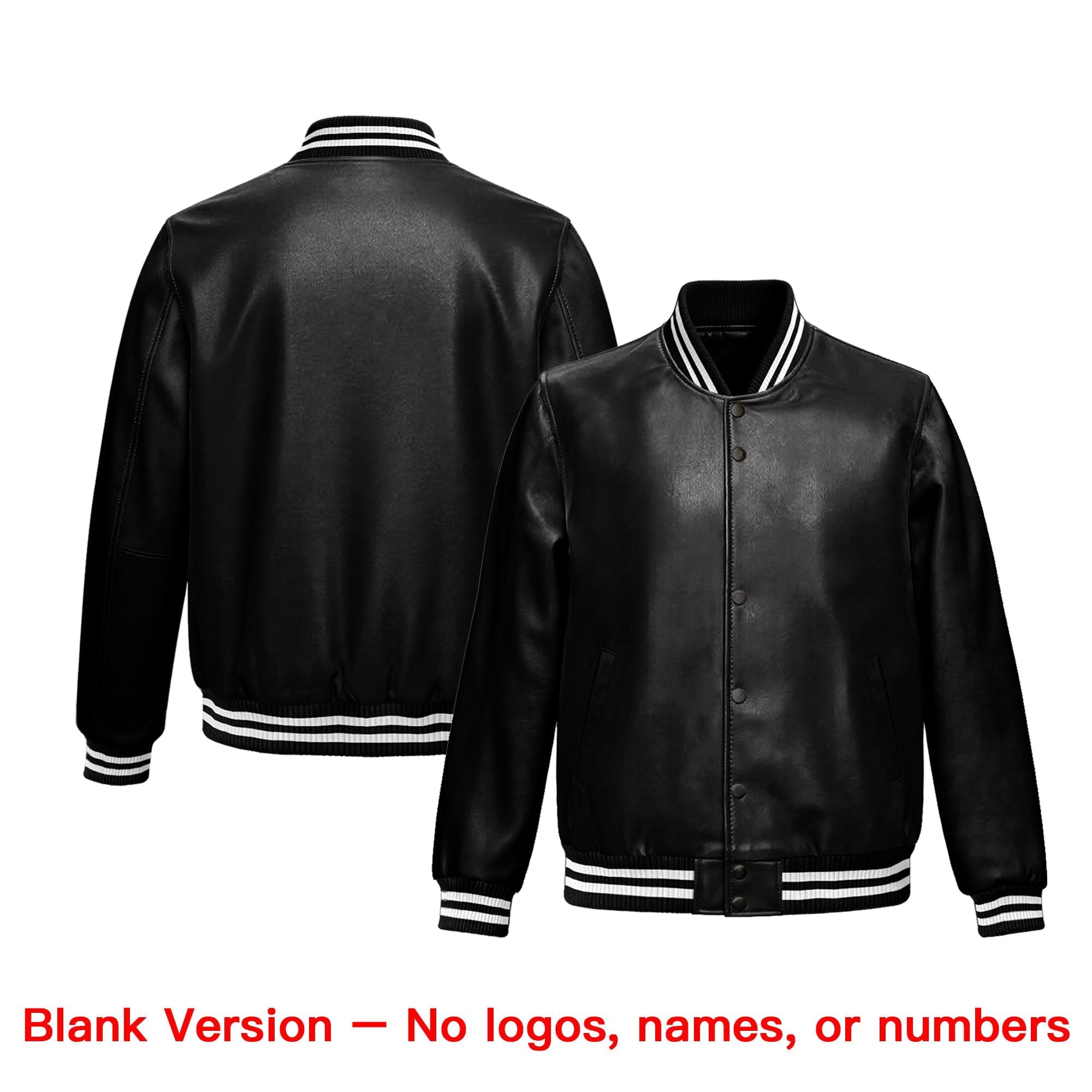 Premium faux leather varsity jacket with an athletic cut and exquisite stitching. Wrinkle-resistant, durable, and featuring a classic front pocket for a sharp, lasting look.